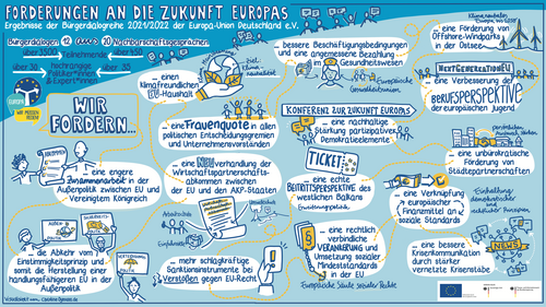 Die Konferenz zur Zukunft Europas hat 49 konkrete Empfehlungen und 326 Maßnahmen vorgeschlagen, die darauf zielen, die EU handlungsfähiger, demokratischer und resilienter zu machen. Die Europa-Union plädiert dafür, die Vorschläge, die sich im Rahmen der bestehenden Verträge sofort umsetzen lassen, umgehend aufzugreifen. Die EU-Kommission solle diese in ihrem nächsten Arbeitsprogramms entsprechend berücksichtigen. Um die Vorschläge aufzugreifen, die Vertragsänderungen erfordern, solle unverzüglich ein Konvent einberufen werden. » weiterlesen