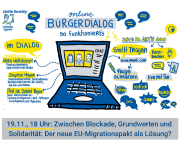 Bei bereits elf erfolgreichen Online-Bürgerdialogen und vielen kleineren dezentralen Formaten in den letzten Monaten nutzten eine Vielzahl von Teilnehmenden die Gelegenheit, sich zu aktuellen europapolitischen Themen mit unseren hochkarätigen Experten im direkten Dialog auszutauschen. Für die kommenden Wochen stehen jetzt die Themen Asyl- und Migrationspolitik am 19. November und Demokratie und Rechtsstaatlichkeit am 3. Dezember auf unserer Agenda. Jetzt hier anmelden und mitdiskutieren! » weiterlesen