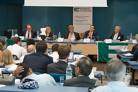 Der Europaabgeordnete und EUD-Ehrenpräsident Elmar Brok steht weiter an der Spitze der Union Europäischer Föderalisten. Beim UEF-Kongress vom 10. bis 12. Juni in Straßburg wurden Präsident Elmar Brok und Generalsekretär Paolo Vacca im Amt bestätigt. Neuer UEF-Vizepräsident ist EUD-Präsidiumsmitglied Otto Schmuck. Sein Vorgänger Heinz-Wilhelm Schaumann gab das Amt nach zehn Jahren ab. Dem Vorstand gehören künftig auch die Europaparlamentarierin und Landesvorsitzende der Berliner Europa-Union Sylvia-Yvonne Kaufmann sowie der… » weiterlesen