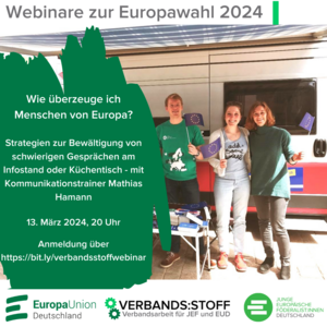 JEF/EUD Verbands:stoff Webinar „Argumentieren für Europa“ am 13. März 2024