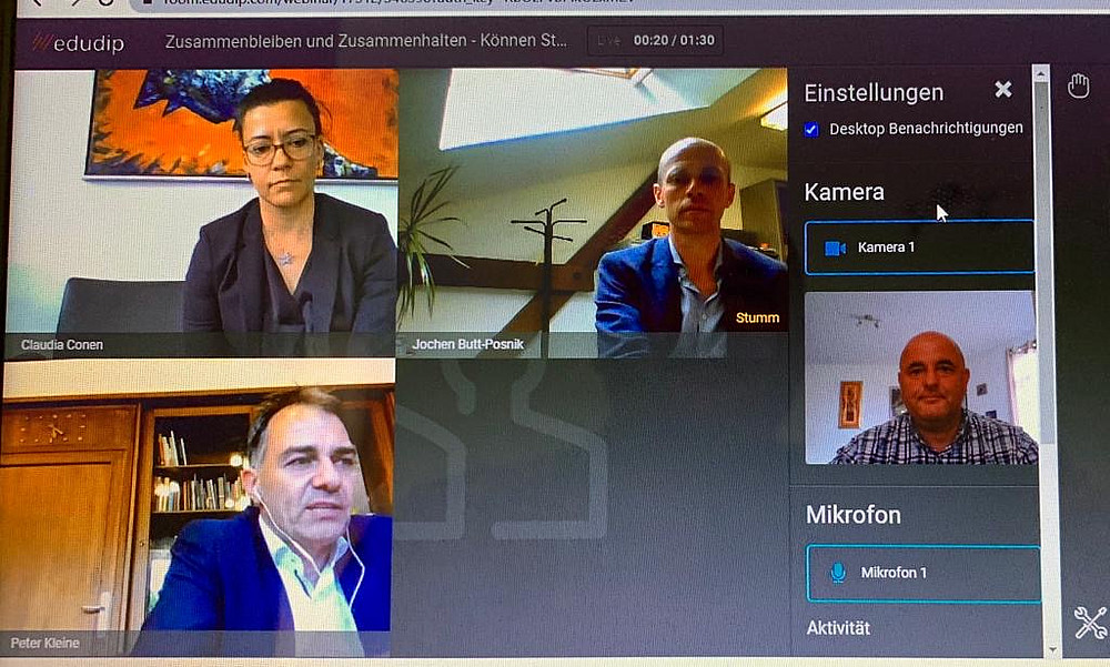 In einem online Bürgerdialog-Format diskutierten am Vorabend zur deutschen Ratspräsidentschaft ca 60 Bürgerinnen und Bürger über die Relevanz von Städtepartnerschaften. Welchen Beitrag können Städtepartnerschaften zur Lösung von aktuellen Problemen in der Gesellschaft leisten? Wie solidarisch sind wir in der Krise mit unseren europäischen Nachbarn? Aber auch: Welche Fragen abseits von Corona sind jetzt wichtig? Welche Rolle über Städtepartnerschaften heutzutage aus? Welche Unterstützung gibt es?