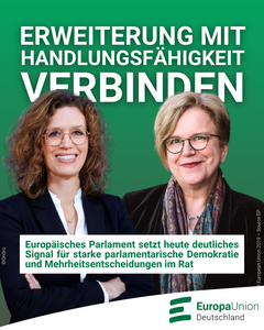 Zum Bericht: Das Europäische Parlament hat heute mit großer Mehrheit der Entschließung des Berichterstatters Sandro Gozi zu den institutionellen Folgen der Erweiterungsverhandlungen zugestimmt. Die Entschließung bündelt Reformen, die die EU erweiterungs- und krisenfest machen sollen: Mehrheitsentscheidungen anstelle von Einstimmigkeit im Rat, Aufwertung des Europäischen Parlaments (stärkere Kontrollrechte, Perspektive auf Initiativrecht), eine effizientere Kommission, eine Reform des Mehrjährigen Finanzrahmens mitsamt neuen Eigenmitteln sowie die frühzeitige Einbindung von Kandidatenländern in Programme und Entscheidungsprozesse.