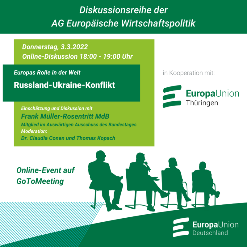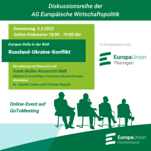 Die Veranstaltung findet im Rahmen der Reihe "Europas Rolle in der Welt" der AG Europäische Wirtschaftspolitik statt. Konzept und Veranstaltungstitel wurden vor dem 24.02. festgelegt. Den weiteren politischen Entwicklungen wird bei der inhaltlichen Gestaltung Rechnung getragen.