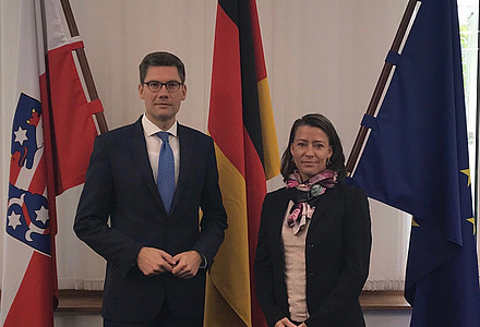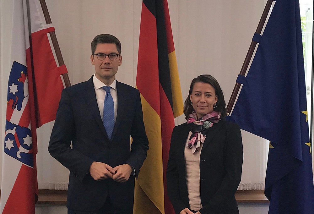 Im September 2019 trafen sich der Parlamentarische Staatssekretär im Bundesministerium für Wirtschaft und Energie (BMWi) Christian Hirte und die Landesvorsitzende der Europa-Union Thüringen, Dr. Claudia Conen um sich über aktuelle europapolitische Themen wie die Folgen der Europawahl, die Zusammensetzung der EU-Kommission oder die europäischen Förderprogramme für den Mittelstand auszutauschen. Nicht nur in seinem Wahlkreis, der Region Eisenach – Wartburgkreis – Unstrut-Hainich-Kreis, verfolgt er die europäischen Herausforderungen und deren Folgen für Thüringen und die anderen Bundesländer genau.