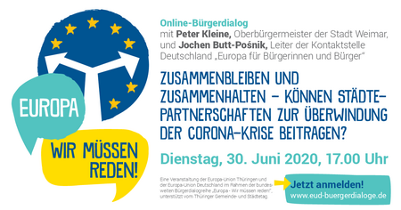 Online-Bürgerdialog „Zusammenbleiben und Zusammenhalten - Können Städtepartnerschaften zur Überwindung der Corona-Krise beitragen?“ am Dienstag, 30. Juni 2020, um 17.00 Uhr.